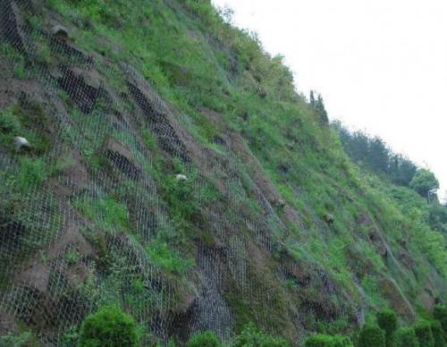 被迫防护网可适应杂乱地势,装置占地少,不损坏原始地貌,能够保护植被的完整性削减对水土的影响,使得边坡景象与当地的环境融为一体,和自然环境的交融性好,具有较强的观赏性。全体受力。防护网和钢丝绳作为一个全体来阻拦落石,能很好地吸收落石能量,平等条件下防护能级更高。
