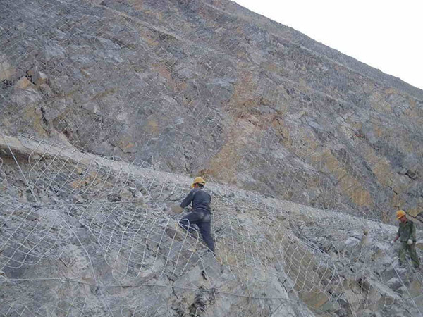 ①铺网:选用网眼为4×4cm或5×5厘米的镀PVC或热镀锌菱形铁丝网铺装坡面,长短依据取舍,斜顶拓宽不少于50cm,旋耕而且用桩钉固定不动后回填土或埋进截水沟中。斜顶固定不动后由上而下铺装。上下两块网中心钢筋搭接总宽不小于10厘米。钉网:关于石坡面状况选用“L”形Φ6~8或其他类型标准的钢锚钉或竹锚钉,锚钉长短依据具体情况各自选用150~400mm。